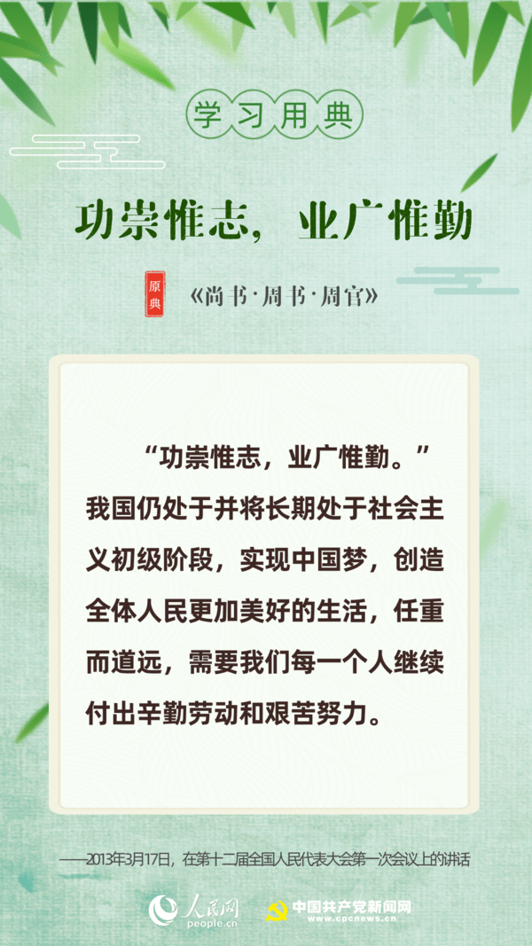 【编者按】“志不求易者成,事不避难者进。”近日,习近平总书记给中国石油大学(北京)克拉玛依校区毕业生回信,对广大高校毕业生提出殷切期望。“人生在勤,勤则不匮”“积土而为山,积水而为海”……近年来,习近平多次引用诗句典故,激励包含广大青年在内的全党全国各族人民拼搏奋进、埋头苦干。正值“战疫”“战贫”关键时刻,人民网·中国共产党新闻网与您一起回顾习近平讲话中关于“奋斗”的10个名句。