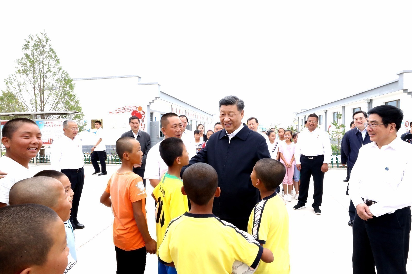 21日上午,习近平总书记来到甘肃省古浪县黄花滩生态移民区富民新村考察调研。小学操场上,孩子们正在老师指导下练习踢足球,看到总书记来了,高兴地围拢过来高声喊“爷爷好”。大家告诉总书记,学校开设了足球、篮球、乒乓球等体育课程,同学们都很喜欢。看着孩子们一张张黝黑的小脸,习近平高兴地说,体育运动要从娃娃抓起,德智体美劳要全面发展。如果像这样偏远地区的小朋友也经常踢足球,足球运动就有了广泛群众基础,中国足球就一定能够冲出亚洲、走向世界。