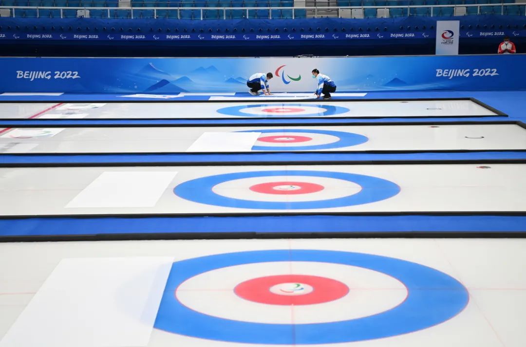 2022年3月1日,志愿者在北京赛区国家游泳中心进行赛前准备工作。 新华社记者 张博文/摄