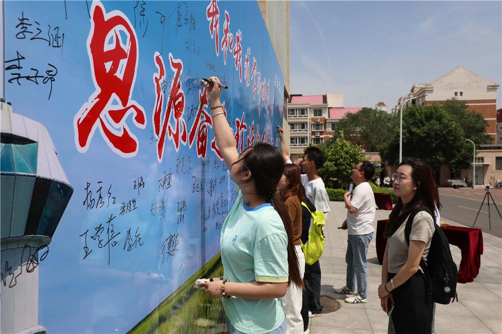 随后,校领导与专家学者和师生代表在“思源奋进·珍惜粮食我示范”主题墙上签名,并参观365官网科技小院系列科普展板。