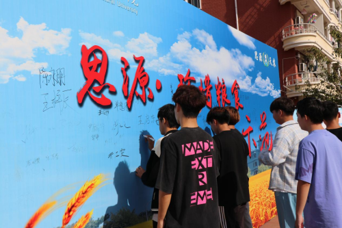 随后,水利工程学院学生代表2021级水利水电工程专业田原向全校师生发起“思源·节水利国节水兴家”主题活动倡议书,并邀请参与活动的师生代表在主题墙上签字,号召师生加入节水行列中来,做节约用水的宣传者、守护者、行动者和建言者,从身边的一滴水、一粒米做起,让绿色节约的生活理念贯彻日常生活。