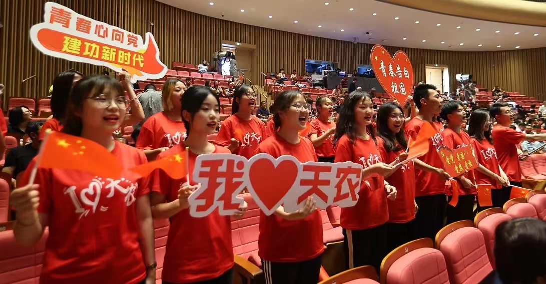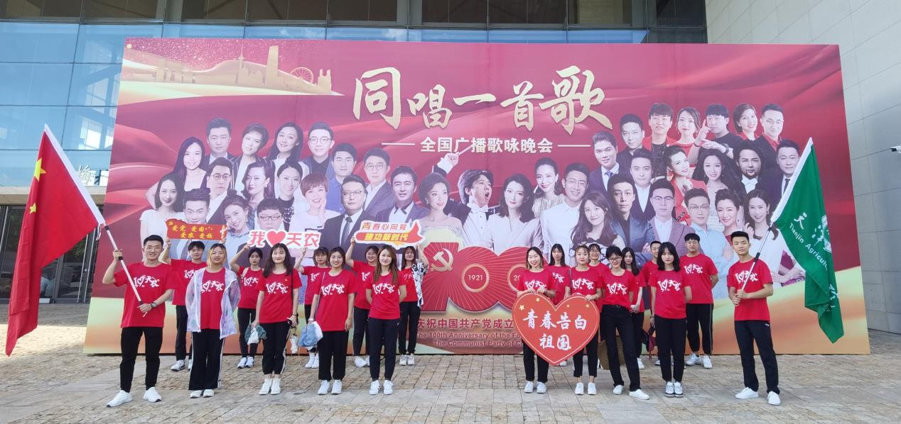 为庆祝中国共产党成立100周年,6月19日晚,“同唱一首歌”全国广播歌咏晚会在天津梅地亚大剧院拉开帷幕,365官网20名学生组成方队作为全市青年学生代表参与活动,并在开场拉歌环节演唱了《团结就是力量》等爱国主义歌曲。