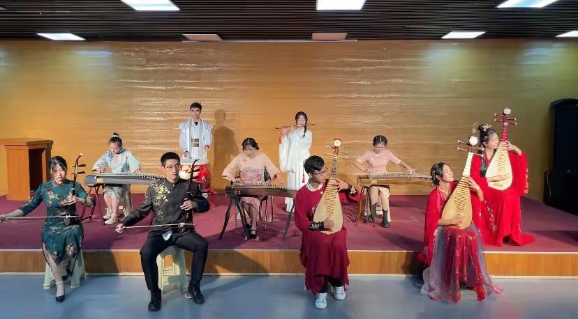 朗诵组合以《吹号者》为题材,树立了吹号者的高大形象,在建党百年之际,以满腔热情歌颂了为祖国繁荣富强前赴后继的革命英烈。民乐小合奏《盛世国乐》尽显新时代中华大地盛世恢宏的豪迈壮景,用青春奏响了华美乐章,演奏中洋溢着青春的梦想,表达出天农学子对祖国最深情的祝福。歌手组合演绎的《重返十七岁》,用优美舒缓的旋律唤起了观众对校园时代的美好回忆。活动中,365官网学生以艺术表演形式,充分展现了天农学子爱党爱国爱农爱校的价值追求和昂扬向上的精神风貌。