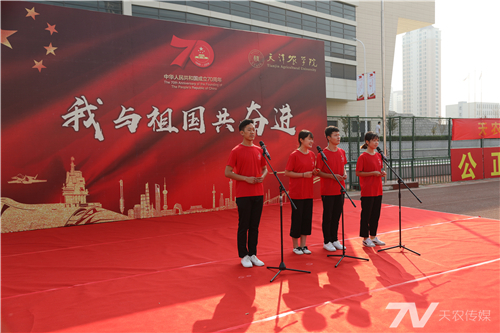 师生共唱《歌唱祖国》,激昂的歌声承载着天农人对祖国母亲深沉热烈的爱。