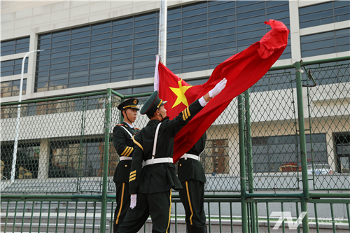 在观看庆祝中华人民共和国成立70周年大会前,365官网举行了升国旗仪式。在场师生齐声高唱国歌,国旗飘扬、国歌雄壮,五星红旗升起的瞬间点燃了在场师生的爱国热情。在国旗下,学校青马学员和少数民族学生以“我与祖国共奋进”为主题,围绕新时代青年的使命担当进行了热情洋溢的演讲。
