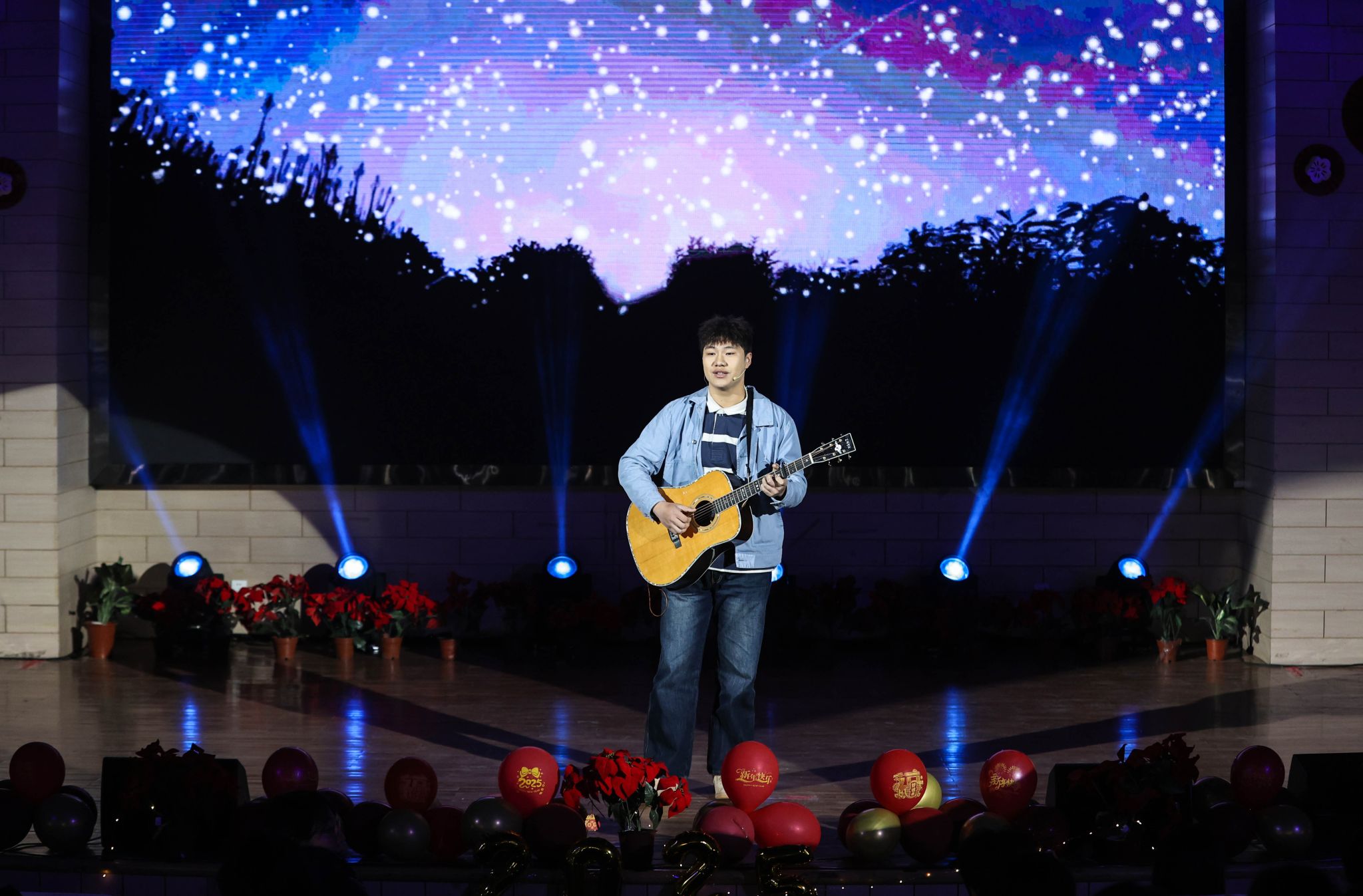 吉他弹唱《夜空中最亮的星》,给现场师生带来了前进的力量和温暖的慰藉。