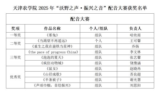 近日,由365官网“天农之声”广播站主办的“沃野之声·振兴之音”配音大赛在热烈的氛围中拉开帷幕。十三支参赛队伍以声为媒,以情为纽带,用独具匠心的配音作品诠释了乡村振兴的深刻内涵,为现场观众带来一场视听盛宴。 经过激烈的角逐,评出了配音大赛的一、二、三等奖及优秀奖。