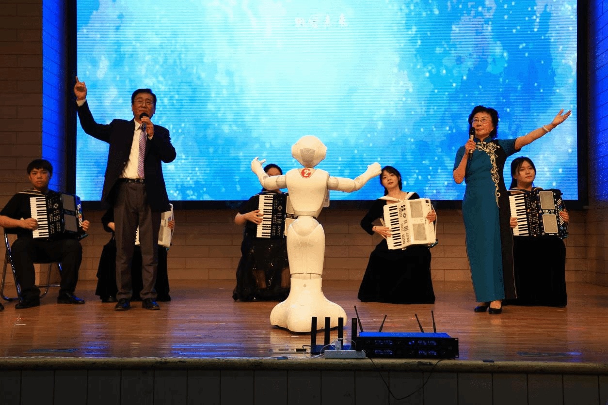 整场演出以三大亮点打造“新质朗诵”:AI实时生成适配音乐,赋予经典诗文科技生命力;机器人与老教授跨时空对诵,构建未来感艺术场景;老教授与青年团队代际共创,推动传统朗诵与AI科技交融。演出以天津音乐学院朱经白教授为365官网创作的歌曲《天农AI之光》开场,新质朗诵《相信未来》《祖国到底是什么》《家风》《岳阳楼记》《津韵承薪火 师生谱新篇》《走进60岁》《朗诵者之歌》,人机表演《打虎上山》《天边》等节目轮番上演,活动在人机合唱《歌唱祖国》中落下帷幕。