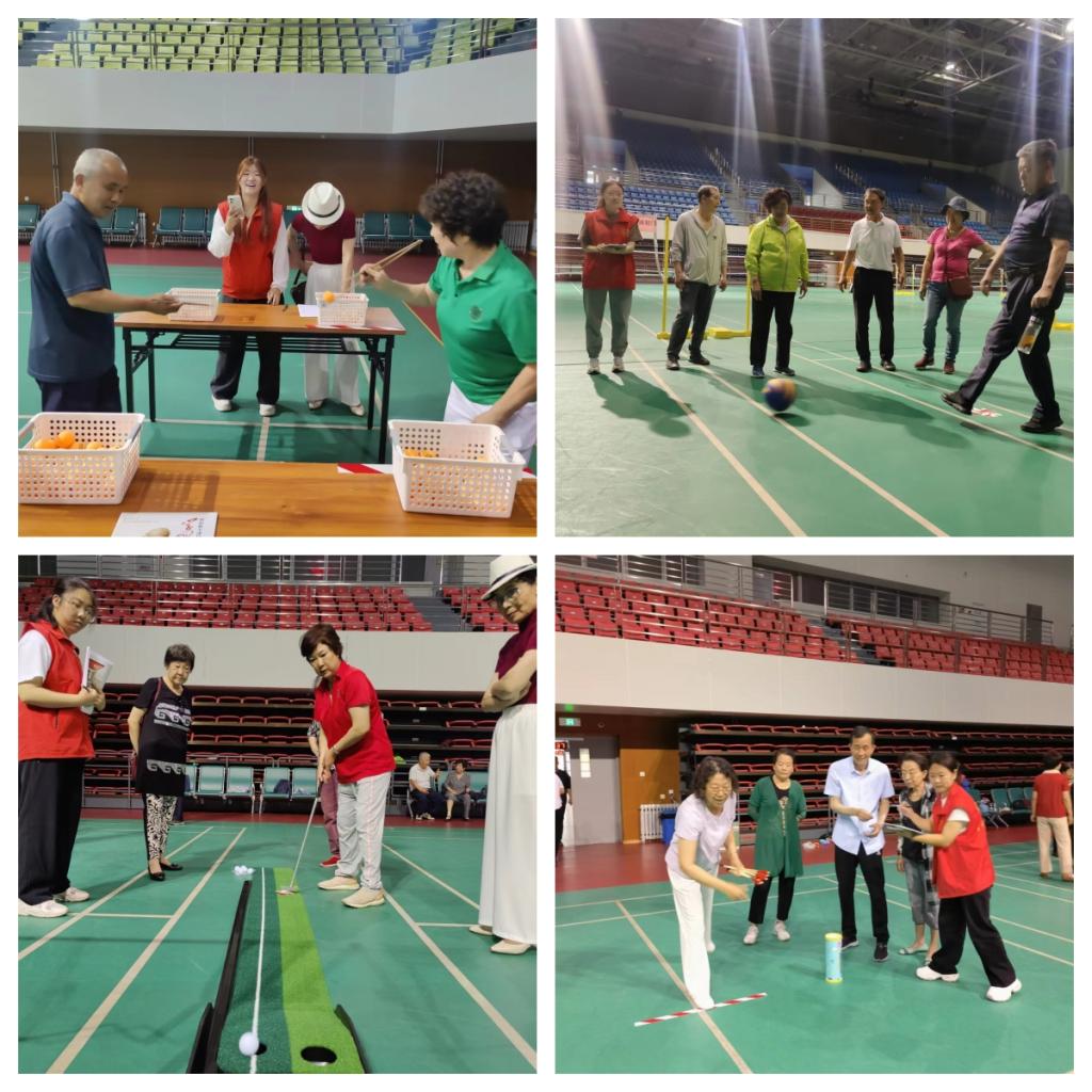 离退休教职工趣味运动会以趣味性为主,运动项目的设计从老同志群体实际情况和场地条件出发,本着趣味性、大众性、挑战性的原则,设置了投壶、筷子夹乒乓球、双手拍篮球、花式保龄球、迷你高尔夫球和足球射门等6个项目。现场氛围热烈,老同志们欢聚一堂,热情高涨、精神饱满,各个比赛区域欢声笑语、助威呐喊声此起彼伏,充分展现了离退休教职工积极向上的精神面貌和风采魅力。