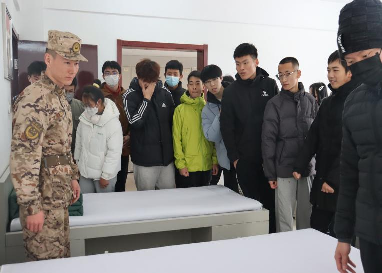 在部队官兵的热情引导下,师生们首先到达“训练场,观看了部队从刺杀、队列、器械、武器拆卸等训练科目的表演,直观地认识和感受到了军队的独特魅力和战士们为和平所付出的汗水。随后,为更加深入了解部队官兵的日常生活,军队的纪律、文化及生活,学生们还到官兵宿舍参观内务,标准的“点、线、面”、一个个棱角分明的“豆腐块”吸引了学生们的注意力,一名武警战士还现场演示了内务整理方法。园艺园林学院2020级杨彦说:“今天来到军营里,我更加坚定了携笔从戎的决心,我一定努力强化自身素质,时刻准备好接受祖国挑选!”