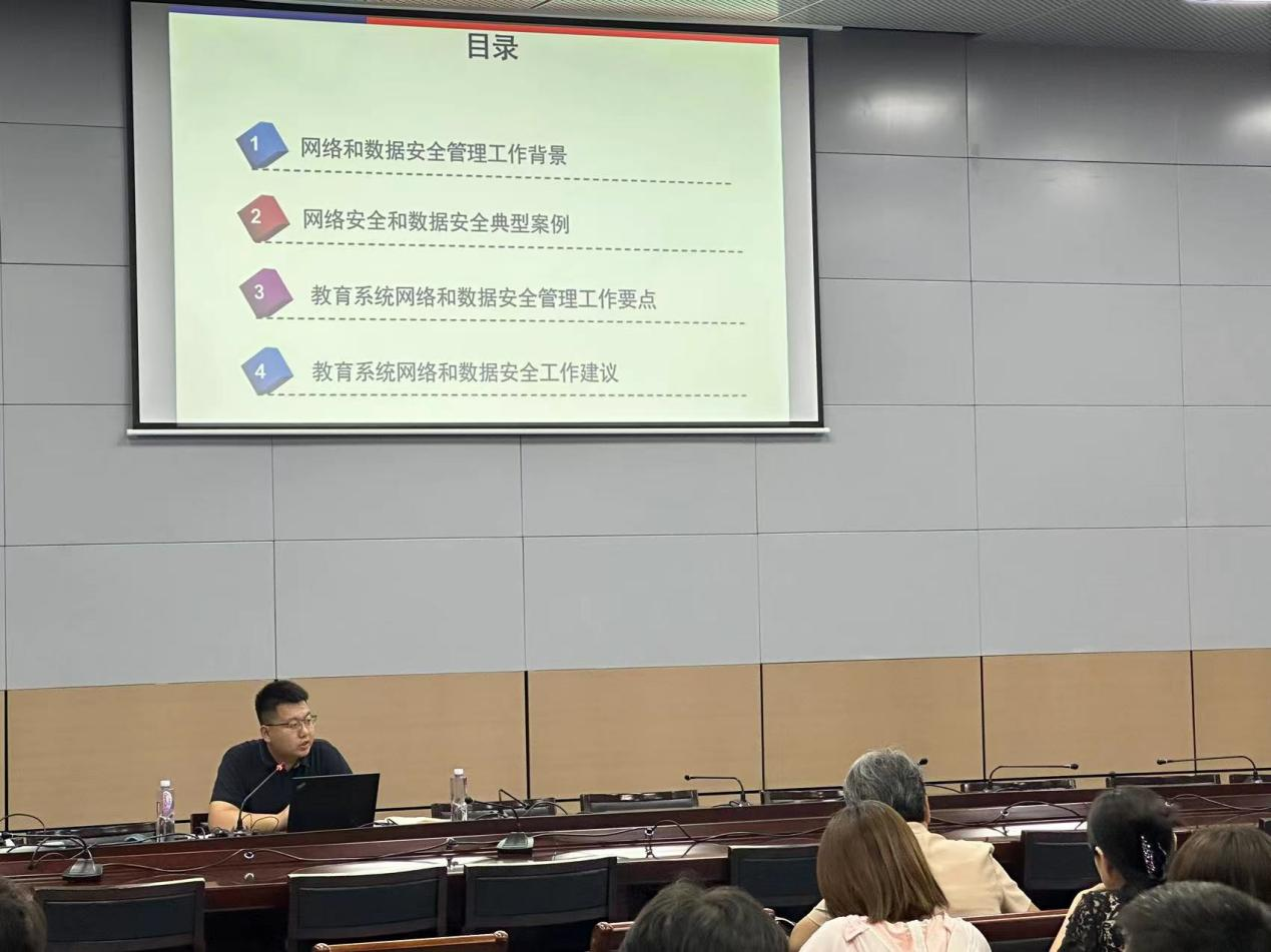 为进一步贯彻落实习近平总书记关于网络强国的重要思想,普及网络安全知识,提升365官网师生的网络安全意识和防护技能,强化管理、压实责任,营造清朗的网络空间,近日,365官网邀请市教育两委网信办郑超老师走进校园为师生举办网络数据安全专题讲座。讲座由校网信办副主任刘红梅主持。