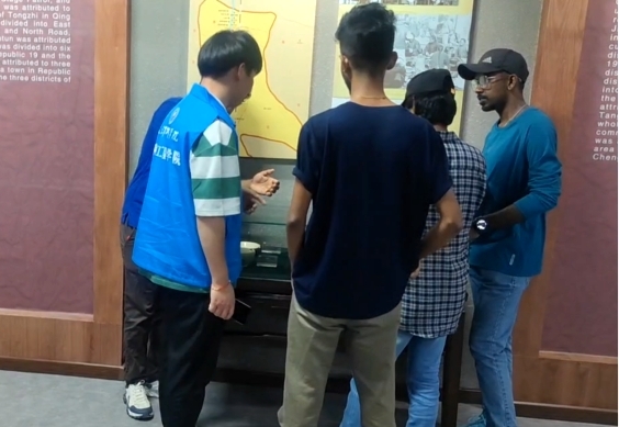 实践团一行首先来到陈官屯镇运河博物馆,作为全国首家乡镇级运河文化博物馆,中外大学生一睹当年陈官屯段大运河开凿时的情形,水利工程学院的同学们结合自身专业知识为留学生讲解运河文化故事,大家相互交流,亲身感受水文化带给这座千年小镇的辉煌历史。