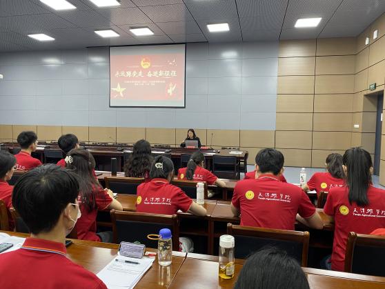 开班仪式上,马克思主义学院党总支书记王延年为365官网“思源青年讲师团”授旗。此次专题培训班以主题团课、集中学习、研讨交流和宣讲演练等形式展开。主题团课由马克思主义学院教师、新华社天津分社记者、天津市学联学生会骨干党的二十大培训班“强国有我”第一宣讲团成员、校团委负责同志讲授。