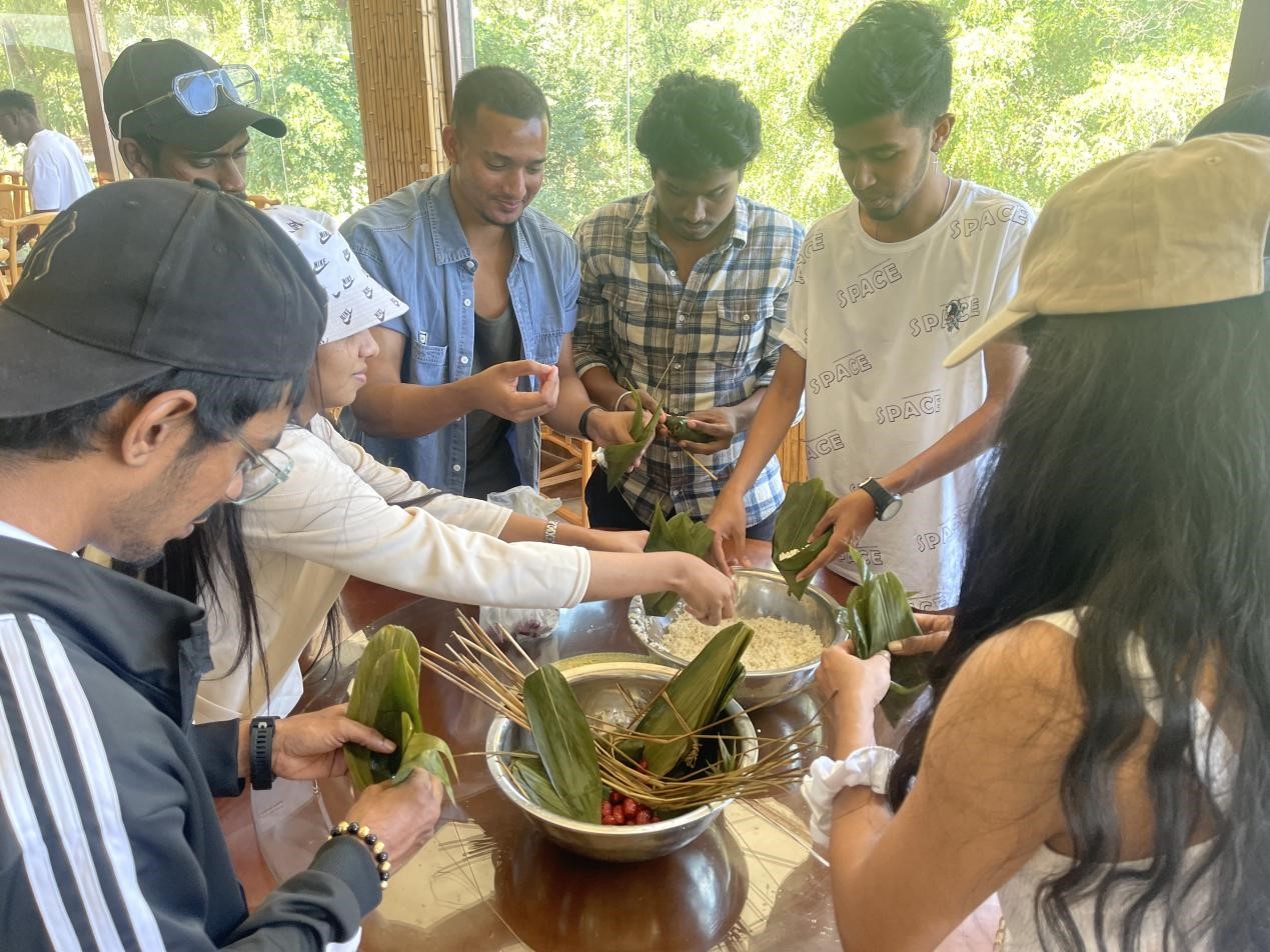 活动中,留学生们通过参与制作粽子的活动,学习了传统的粽子制作方法和包粽子的技巧。他们一边聆听着老师的讲解,一边动手实践,通过自己的劳动和体验,深刻感受到了中国传统文化的丰富性和历史底蕴。同时,留学生还体验了从采集艾草、烘干艾叶到缝制香包全过程,五彩的线绳将现场的欢声笑语串联在一起,“色、香、味”俱全的活动让留学生深层次、多角度地了解到端午习俗与文化。活动结束后,留学生纷纷表示要把自己亲手制作的粽子和香包送给亲人和朋友们,以自己的方式让更多人了解中国传统文化。