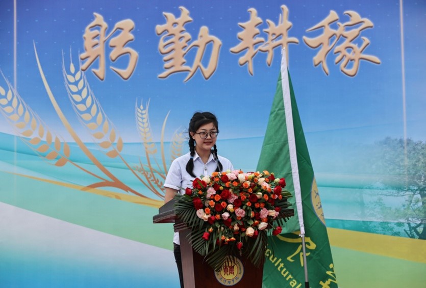 研究生代表农学与资源环境学院翟凯宇同学带领全体新生入学宣誓,誓以秉承天农校风,严谨求实,团结创新。谨记天农校训,敏学切问,躬勤耕稼。弘扬天农精神,爱岗敬业、艰苦奋斗、团结向上、自强不息。爱党爱国,爱农爱校,立鸿鹄志,求真学问。争做德智体美劳全面发展的社会主义合格建设者和可靠接班人,将小我融入大我,青春献给祖国“三农”事业。为实现中华民族伟大复兴的中国梦而努力奋斗。