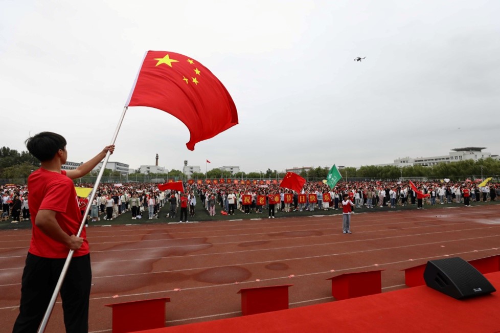 最后,现场师生共同挥舞手中的国旗用真挚的情感、最洪亮的歌声表达了对伟大祖国的热爱!向伟大祖国告白,庆祝中华人民共和国成立七十五周年,向全体老师致敬,给每一位老师送去最诚挚的节日祝福!在全场师生齐声高唱《歌唱祖国》的热烈氛围中,开学典礼圆满落幕!