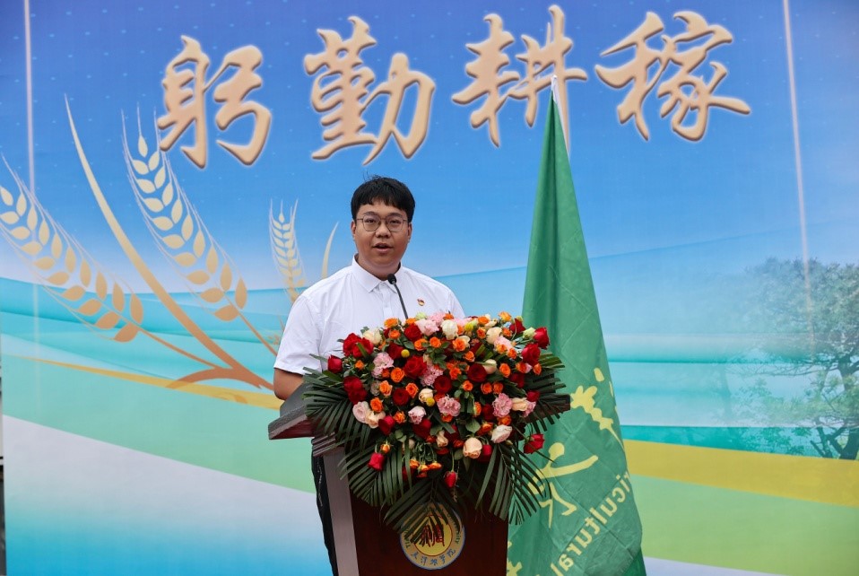 水利工程学院水文与水资源工程专业2021级魏子鹏同学作为在校生代表发言,他分享了在天农的学习与“思源”文化生活经历,并寄语学弟学妹们勇挑重担,厚植爱党爱国爱农爱校情怀,练就强农兴农本领,用青春的能动力和创造力激荡起民族复兴的澎湃春潮,奋力书写中国式现代化的青春篇章!