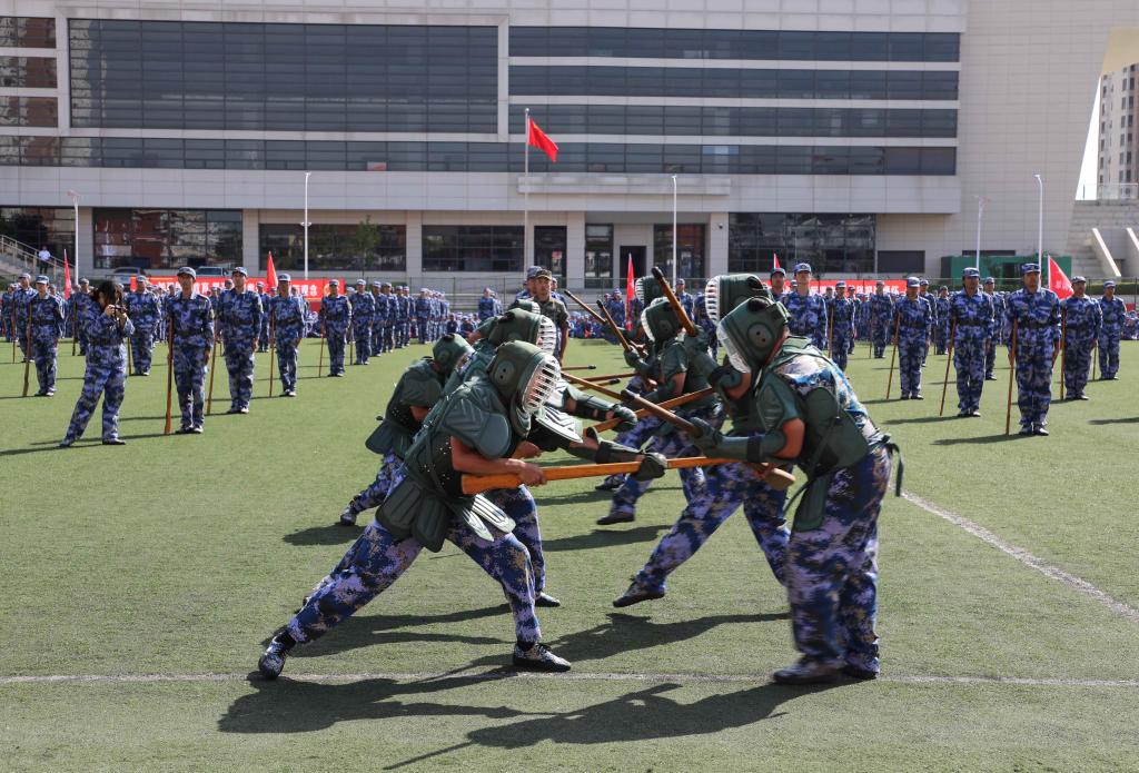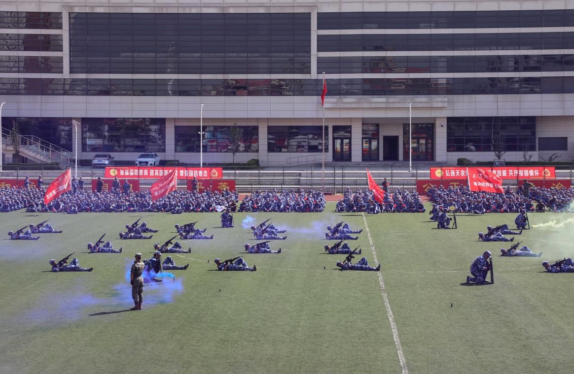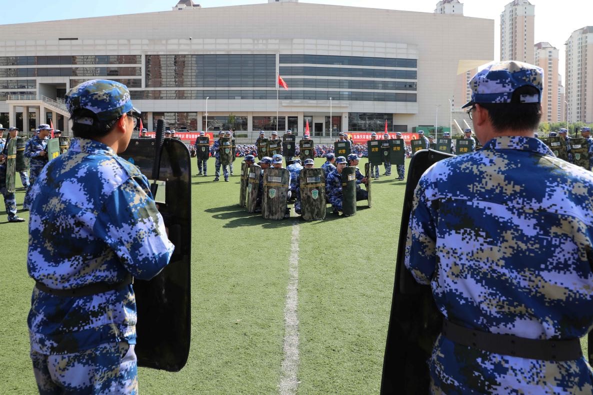 接着是军事技能训练成果展示环节。擒敌拳方队动作迅猛有力,招式连贯流畅,彰显出365官网学子文武双全、勇于拼搏的精神风貌;刺杀操方队步伐整齐、气势如虹,展现军人刚毅;匕首操方队虎虎生威,巾帼不让须眉,愈发有气吞山河之气势;警棍盾牌术动作协调规范,节奏分明、刚柔相济,做到了警棍与盾牌攻防的完美配合;战术方队向大家展示了战斗的基本原则、战斗协同部署、战斗指挥、战斗行动等一系列内容;最后的旗海方队气势磅礴,几十面红旗随风飘扬,汇聚成一片壮丽的红色海洋,向中华人民共和国成立75周年深情献礼!