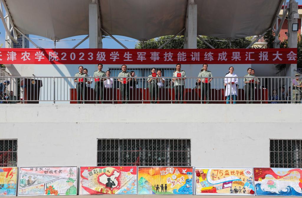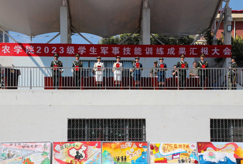 张利民宣读了2023级学生军训先进集体、先进个人表彰决定,对前期评选出的先进集体、优秀教官、天农最美退役大学生、优秀学员和优秀带训教师等进行了表彰并颁发荣誉证书。此外,还推选出11间标兵宿舍,带动了宿舍内务环境的整体提升。