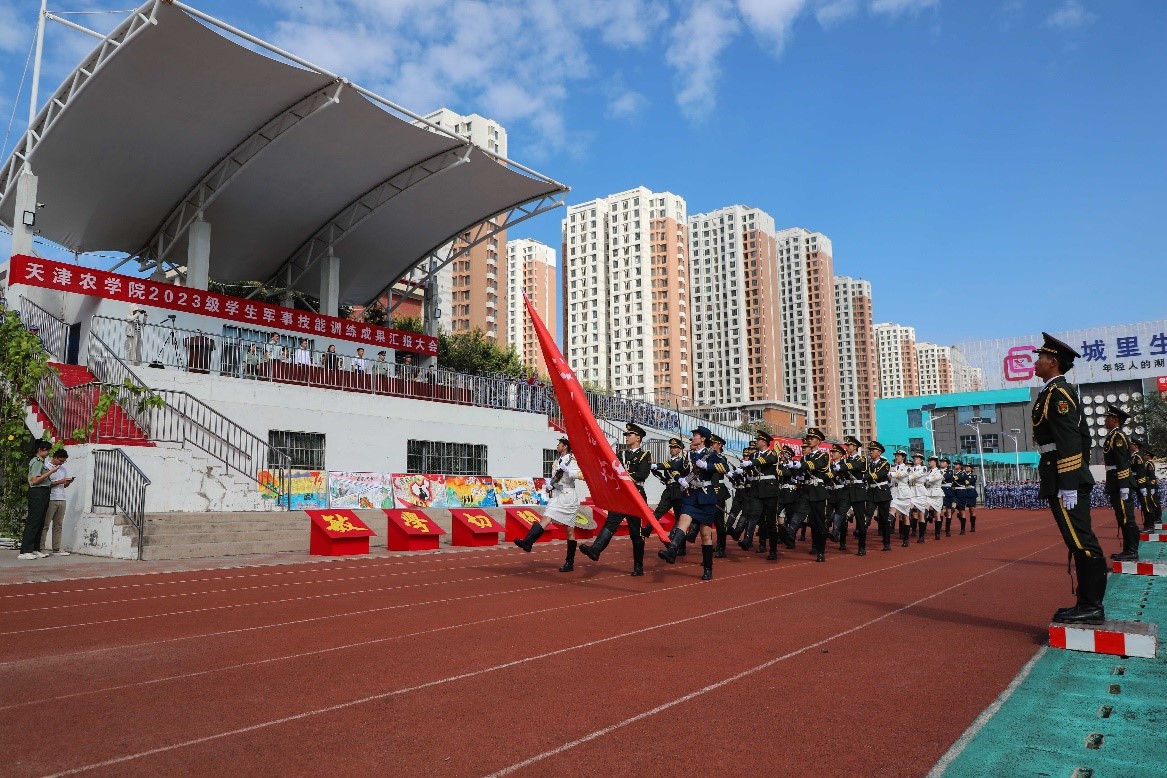 首先是分列式检阅,各连参训学员方队同学步伐整齐、口号嘹亮,以饱满的热情和昂扬的斗志依次通过主席台。他们英姿飒爽,展现出天农学子昂扬向上的青春风采。