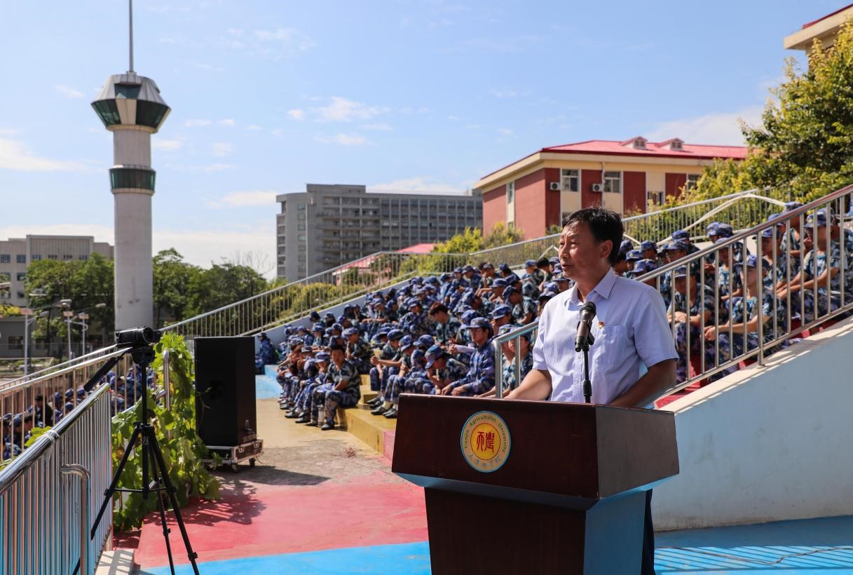承训部队教官代表王平发言,他表示希望通过军训能够帮助同学们培养顽强的意志力、深厚的服从意识和积极的集体主义精神。此外,他还对同学们提出三点希望:一要树立主人翁意识,积极维护学校的声誉;二要始终以军人的标准严格要求自己,努力养成良好的生活和学习习惯;三要增强组织纪律观念,自觉遵守学校的各项管理制度。