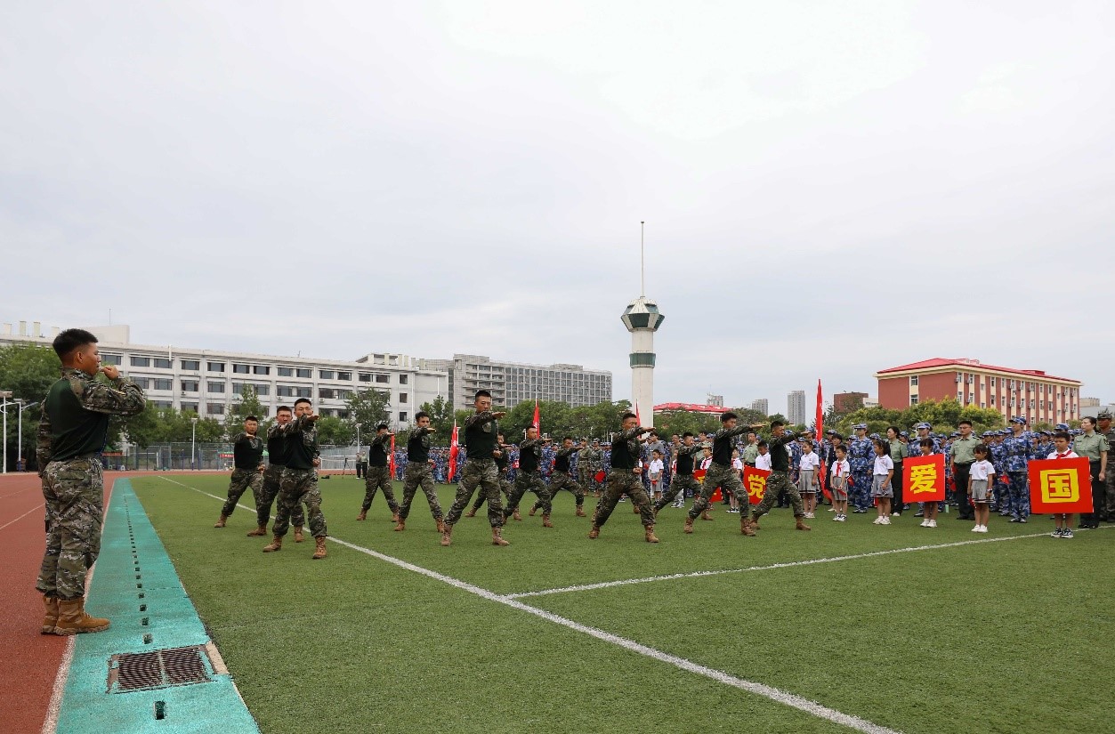 活动中,军训教官方阵进行擒敌拳展示,动作整齐划一、干脆有力,气势排山倒海、势如破竹,一招一式之间,展现了中国军人扎实的基本功和骁勇善战的硬实力,让师生深刻感受军人对职责的无限忠诚和对使命的坚定执着,在场师生爆发出热烈的掌声。