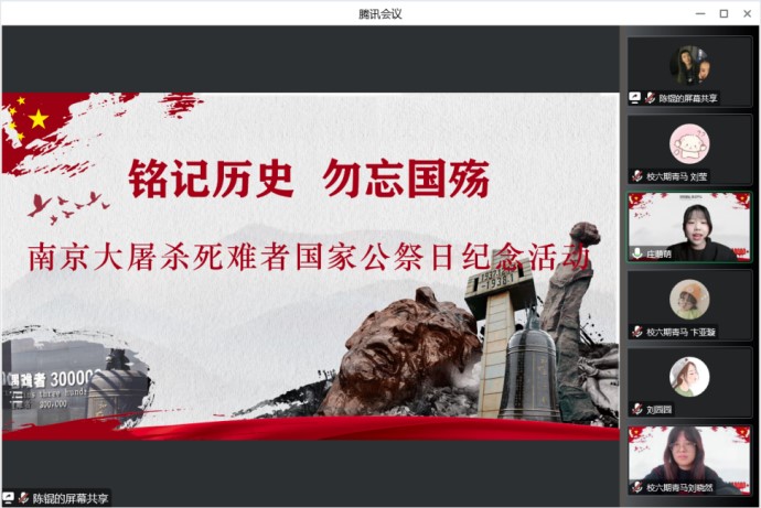 2022年12月13日,是第九个南京大屠杀死难者国家公祭日。上午9时,365官网第六期青马班、当代中国马克思主义研究会、延安精神研究会在线上举办“铭记历史 勿忘国殇”南京大屠杀死难者国家公祭日主题纪念活动。