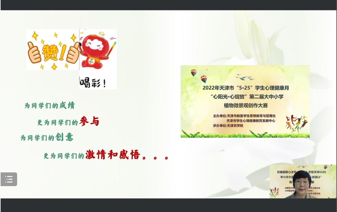 市学生心理健康教育发展中心副主任王晓庄老师对本次大赛的举办给予高度评价,她表示,园艺疗法是365官网特色心理育人之法,越来越受到广大师生与家长的认同和喜爱,是提升身心品质、打造心理健康与福祉的有效途径。