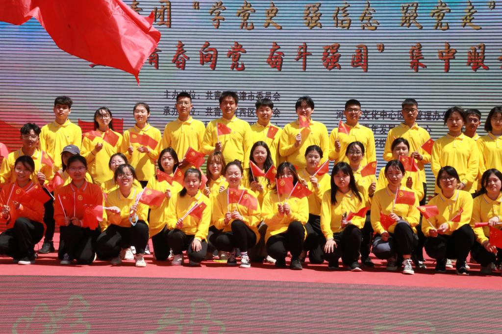 为庆祝中国共产党成立100周年,纪念五四运动102周年,展现青春风采,凝聚青年力量,天津共青团“学党史 强信念 跟党走”主题团日暨“青春向党 奋斗强国”集中服务活动于5月4日在天津文化中心彩悦城前广场举行。365官网48名师生代表与来自全市各行各业的青少年代表欢聚一堂,共度五四青年节。