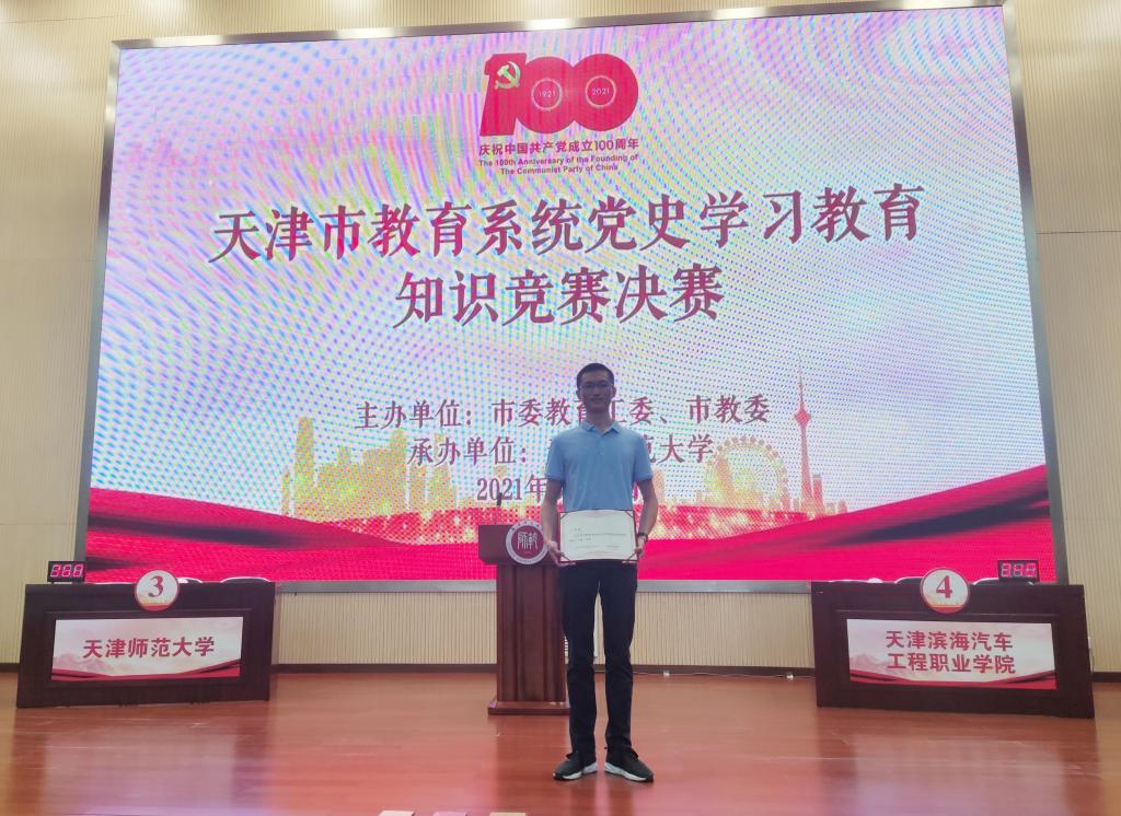 5月18日,由市教育两委主办的教育系统党史学习教育知识竞赛决赛在天津师范大学举行。365官网选派的王展鹏同学荣获二等奖。