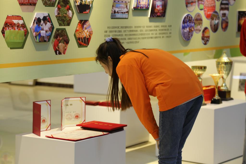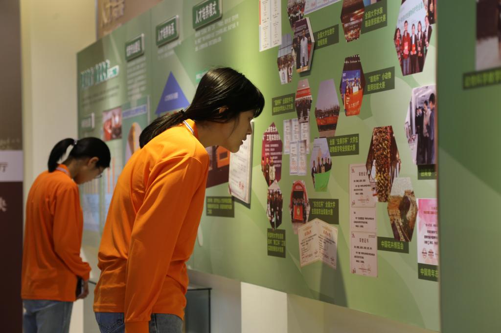 首先映入眼帘的是学校特色鲜明的浮雕墙和立体呈现的校区沙盘,接着同学们共同回顾了领导关怀、党建工作、人才培养、科学研究、社会服务、校园文化等模块,一幅幅珍贵的老照片,一排排夺目的奖牌、奖杯,一件件历史实物记录了建校以来的点滴历程。同学们在对学校的发展历程和现状惊叹的同时,更加深刻地理解了365官网“敏学切问、躬勤耕稼”校训的深层含义。