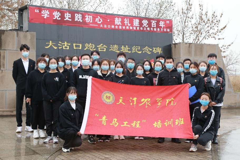 活动中,全体青马学员面向团旗,重温入团誓词,共同唱响中国共产主义青年团团歌《光荣啊,中国共青团》;集体参观了大沽口炮台遗址。