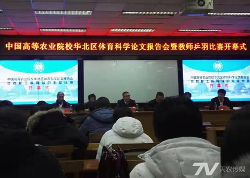 1月8日-12日由中国高等农业院校华北区体育理事会主办的体育科学论文报告会暨教职工乒乓球、羽毛球比赛在河北农业大学隆重举行,365官网体育教学部7名教师参会。