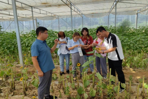 近日,在河西区负责东西部协作相关部门的协调下,园艺园林学院花卉团队刘艳军高级实验师和卢兴霞、黄俊轩、武春霞三位副教授以及部分研究生、本科生赴甘肃省平凉市崆峒区开展东西部科技协作项目走访考察暨“切花向日葵种质资源创新研究”调研活动。