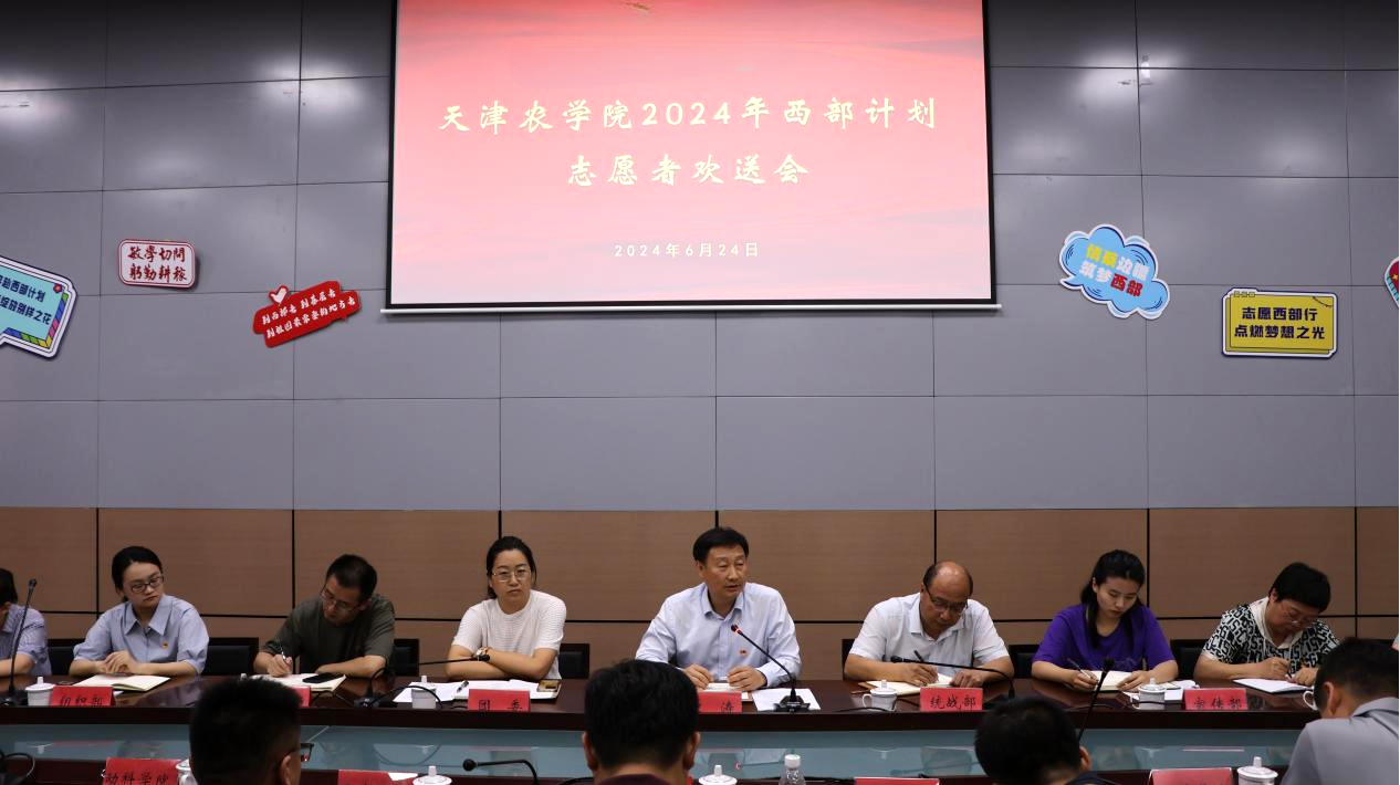 会上,宋涛对西部计划志愿者提出三点寄语:一是永葆青春朝气,展现天农志愿者的自信自强、刚健有为的精神风貌,为西部带去属于青年人的朝气和活力,厚植爱党爱国爱农爱校情怀,将自己的青春和热情投入到西部的发展中,用实际行动诠释对祖国的热爱和忠诚;二是密切联系群众,希望志愿者在工作岗位上锤炼品德,展现青年的奉献精神与责任感,鼓励志愿者们在西部实践中牢记天农校训,练就兴农本领,与当地人民紧密结合,用真诚和热情浇灌西部之花在群众中生根发芽;三是坚持自我反思,希望志愿者们增强学习自觉,强化理论武装,严守纪律,担当负责,不断从基层丰富生动的社会实践中汲取成长的营养,逐步充实自我、完善自我、超越自我,赋能西部建设,为当地人民提供优质服务。