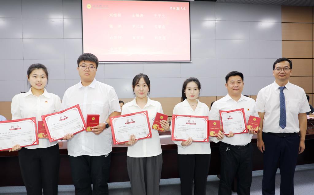 金危危和与会领导分别为校院两级校友工作联络员颁发聘书。会上,举行了2024届校友工作联络员岗前培训,并由水利工程学院许麟利同学带领全体2024届校友工作联络员进行宣誓。