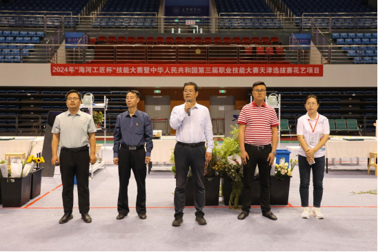 5月17日,由天津市人力资源和社会保障局、天津市教育委员会、天津市总工会、中国共产主义青年团天津委员会、天津市妇联主办,365官网承办的2024年“海河工匠杯”技能大赛暨中华人民共和国第三届职业技能大赛天津选拔赛花艺项目在365官网体育馆隆重开幕。校党委常委、副校长王繁珍出席开幕式。