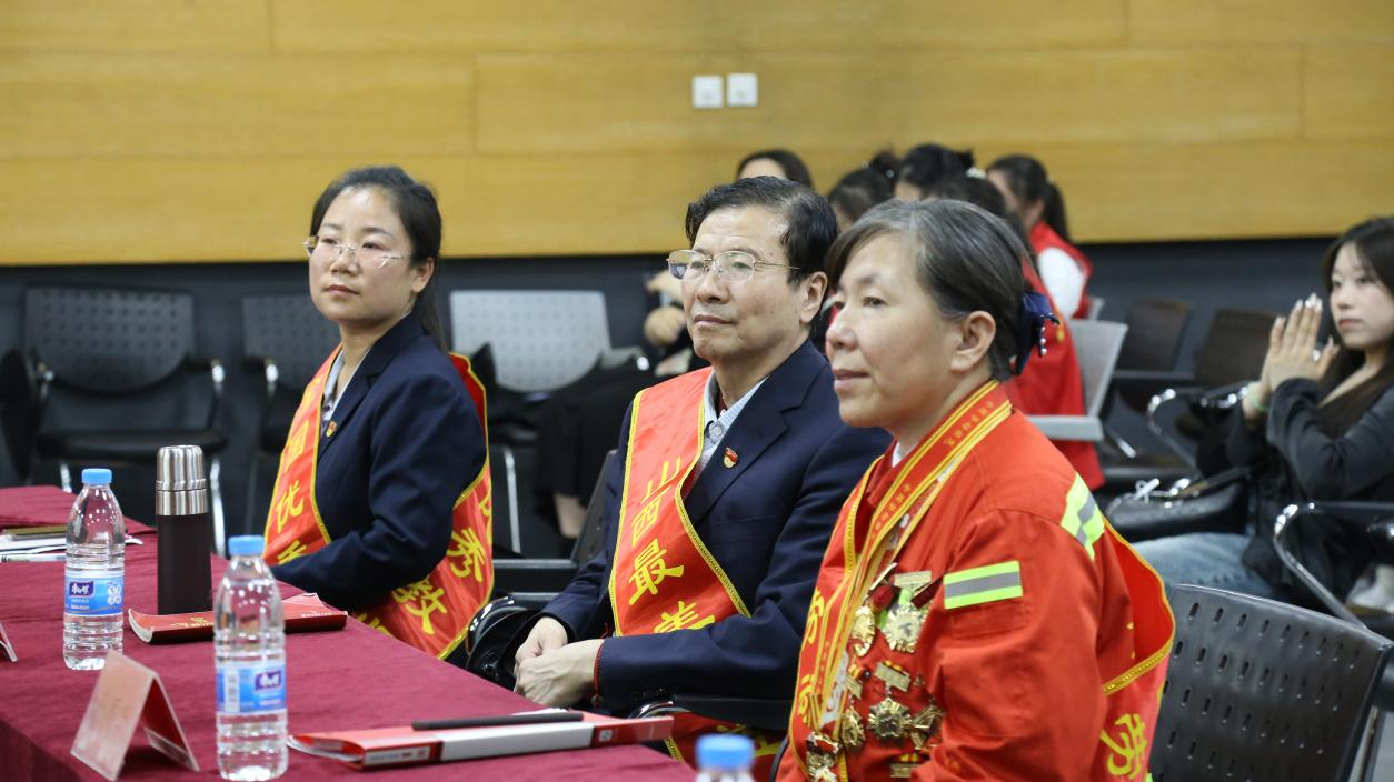 受到习近平总书记接见的全国文明家庭、全国劳动模范孙秀兰老师以《三代奉献环卫工,爱心接力学雷锋》为题作报告,展现了环卫工人吃苦耐劳、甘于奉献、为大家舍小家的精神。她用她父亲教育她的话语——“活既要干,又要干得漂亮”来勉励青年勤于劳动,不怕苦不怕累,把有限的生命投入到无限的为人民服务中去。
