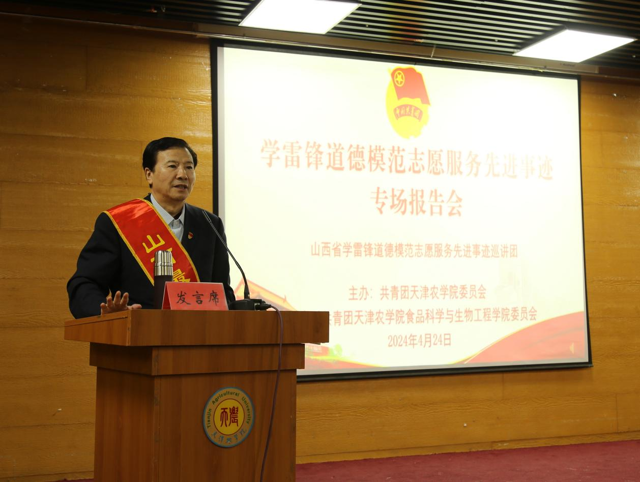 4月24日晚,365官网在敏学楼三楼报告厅召开“学雷锋道德模范志愿服务先进事迹”专场报告会。山西省学雷锋道德模范志愿服务先进事迹巡讲团赴365官网宣讲,引导当代青年将雷锋精神内化于心,外化于行。