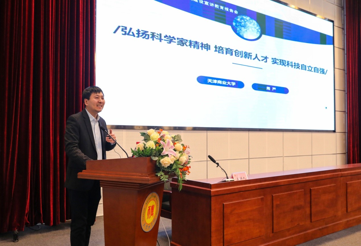 周严教授以《弘扬科学家精神 培育创新人才 实现科技自立自强》为题,结合自身对于学风建设的思考与探索,向广大青年科技工作者宣扬进一步弘扬科学家精神、加强作风和学风建设的必要性和重要性。