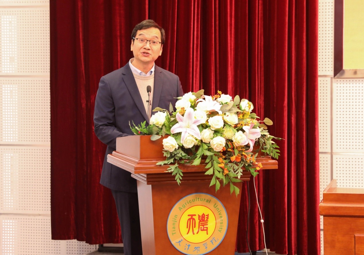 金危危在致辞时代表学校向与会的各位专家、领导、老师和同学表示欢迎,并指出,学校全面贯彻落实习近平总书记关于弘扬科学家精神和加强作风学风建设工作重要指示精神,强化恪守优良科学道德,维护良好学术风气,坚守科研诚信规范,希望老师和同学们能够认真聆听、深度思考,在科技创新的道路上勇毅前行,为天津市打造现代都市型农业升级版以及全面推进乡村振兴作出积极贡献。