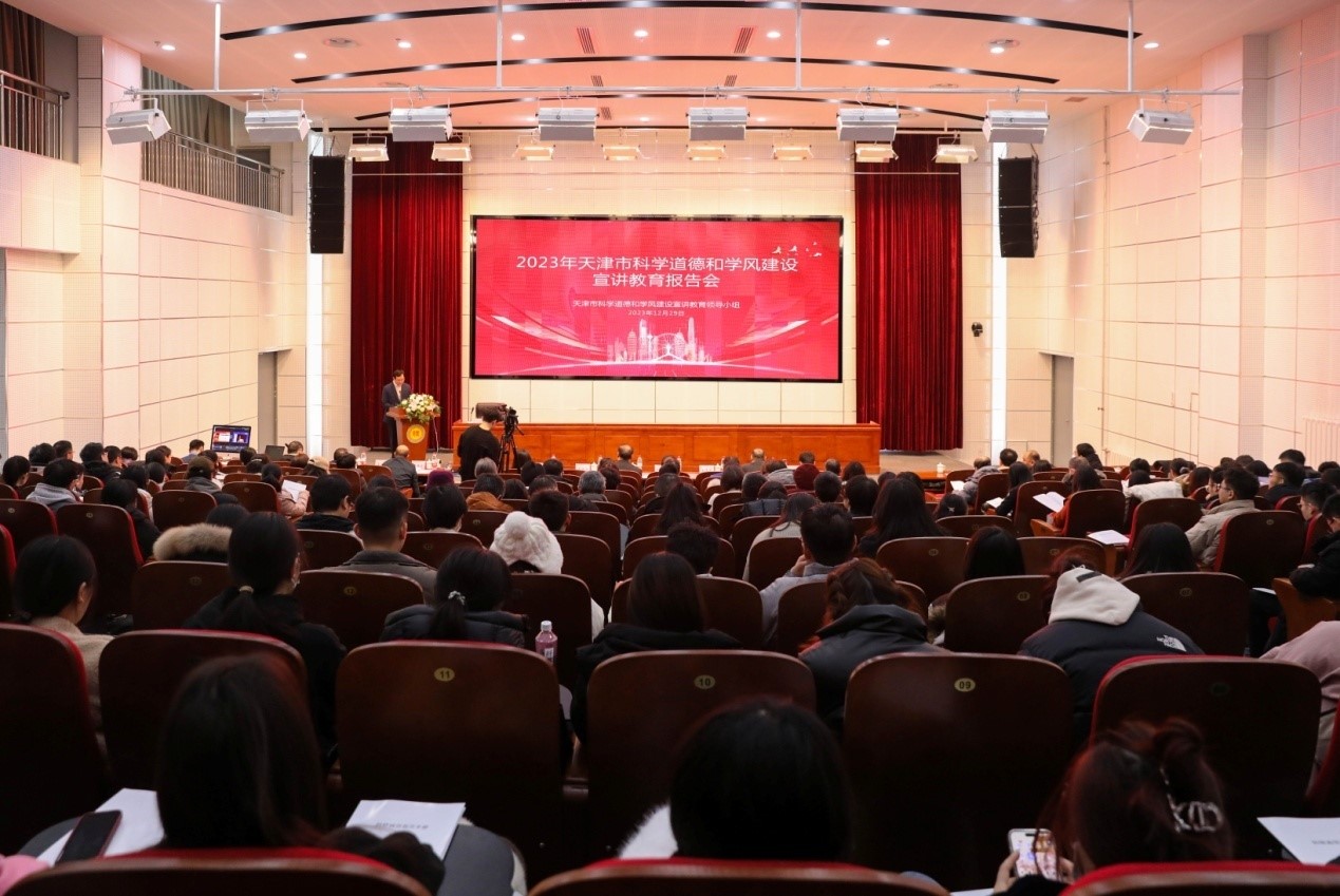 近日,由市科协、市教委、市科技局、天津社会科学院共同主办,365官网与天津市科技社团创新发展促进会联合承办的2023年天津市科学道德和学风建设宣讲教育报告会在365官网举行。中国科学院院士、天津大学地球系统科学学院院长刘丛强教授,市科协党组成员、一级巡视员、科技社团党委书记卢双盈,市科技局党委委员、副局长祖延辉,天津商业大学理学院副院长周严教授,天津社会科学院科研组织处副处长陈静等出席会议,市教委副主任罗延安主持会议。校党委副书记、校长金危危出席会议并致辞。