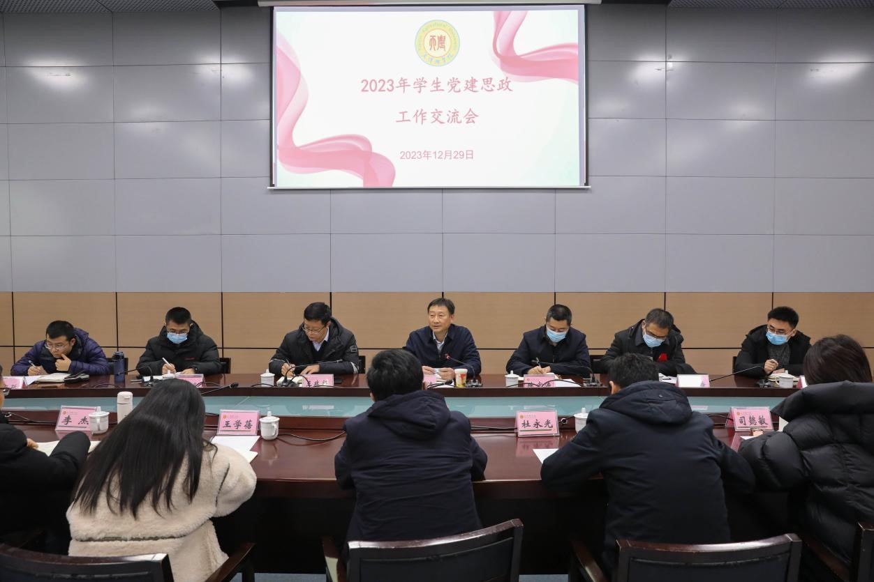 宋涛代表学校党委对一年来全校思政工作队伍所展示的良好精神风貌和取得的工作成效给予充分肯定,对学生工作干部的积极付出和自觉奉献表示衷心感谢,对进一步加强大学生党建和思政工作提出要求。一是要把强化理论武装作为首要任务,坚持不懈用习近平新时代中国特色社会主义思想凝心铸魂,将学习成效及时转化为推动落实工作的自觉行动。二是要紧紧抓住发展学生党员工作,注重全方面、宽视野、多渠道做好教育引导、培养考察工作,发挥学生党支部组织引领保障作用,确保发展学生党员工作高质量,学生党员发挥好示范带头作用。三是要发挥大学文化的引领作用,持续深化爱党爱国爱农爱校教育,强化“思源奋进”文化价值引领,积极构建“一院一景”文化品牌,组织调动最大范围的师生共同开展文化实践,共建大学文化,共享文化成果。