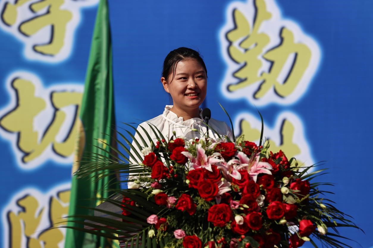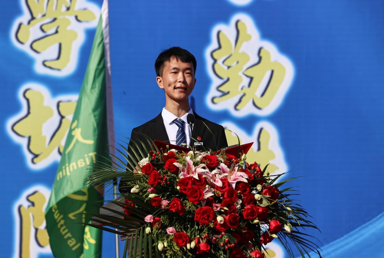 水产学院2020级水产养殖学专业贺文聪作为在校生代表发言,她分享了在天农的学习经验和成长历程并寄语学弟学妹们要珍惜时光,厚植爱党爱国爱农爱校情怀,练就强农兴农本领,思源奋进深耕三农,挺膺担当砥砺青春。