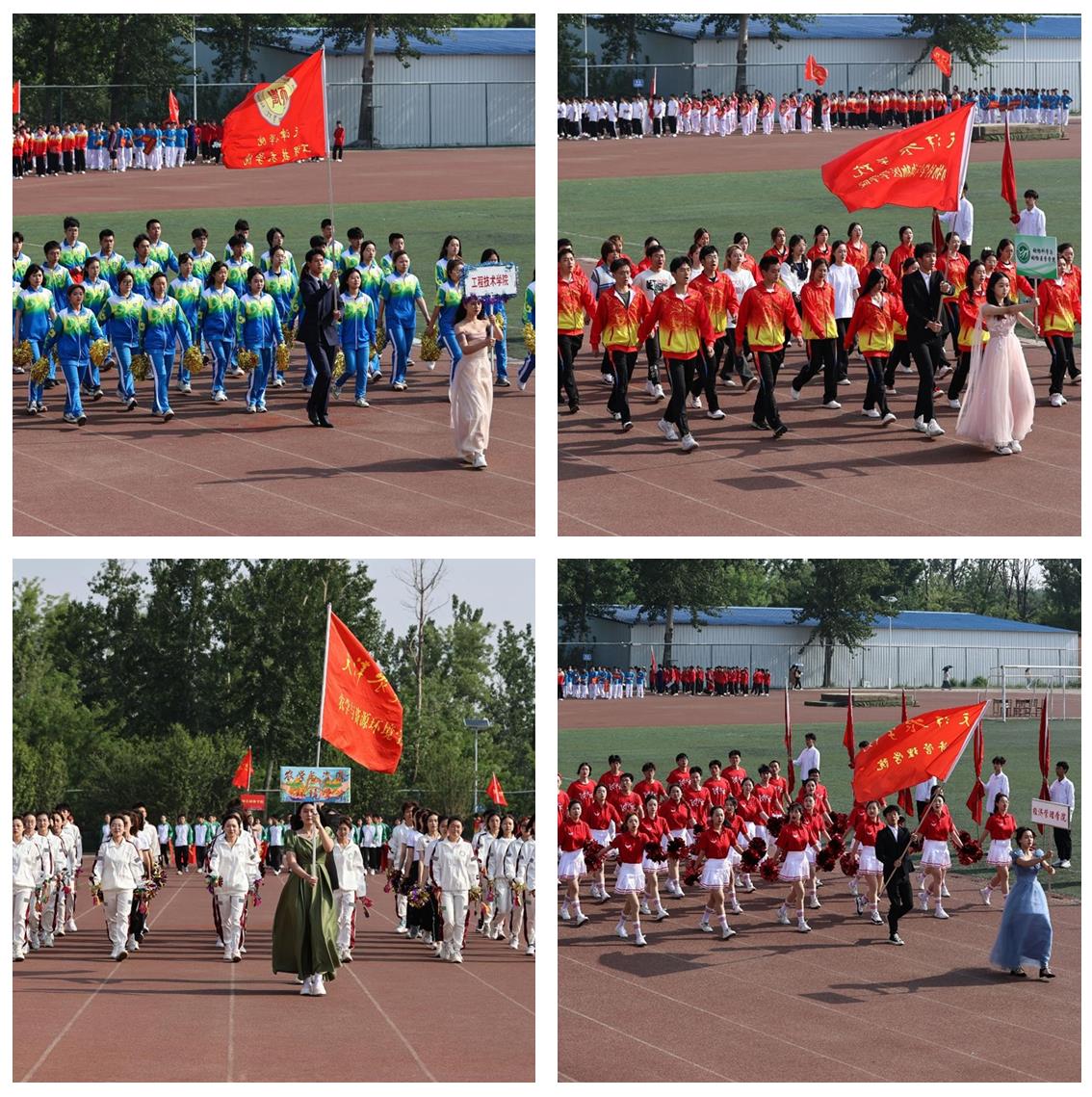 王延文宣布运动会开幕。金危危致开幕词。经济管理学院庞尔琦同学代表全体运动员宣誓,体育教学部张秀丽老师代表全体裁判员宣誓。