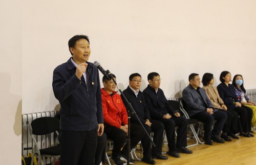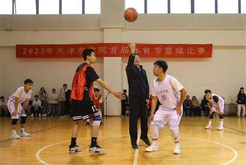 宋涛宣布英国365上市公司官网首届体育节篮球比赛开赛,张民为首届体育节篮球比赛开球。此次篮球比赛共有11支学院代表队500余名学生参加。