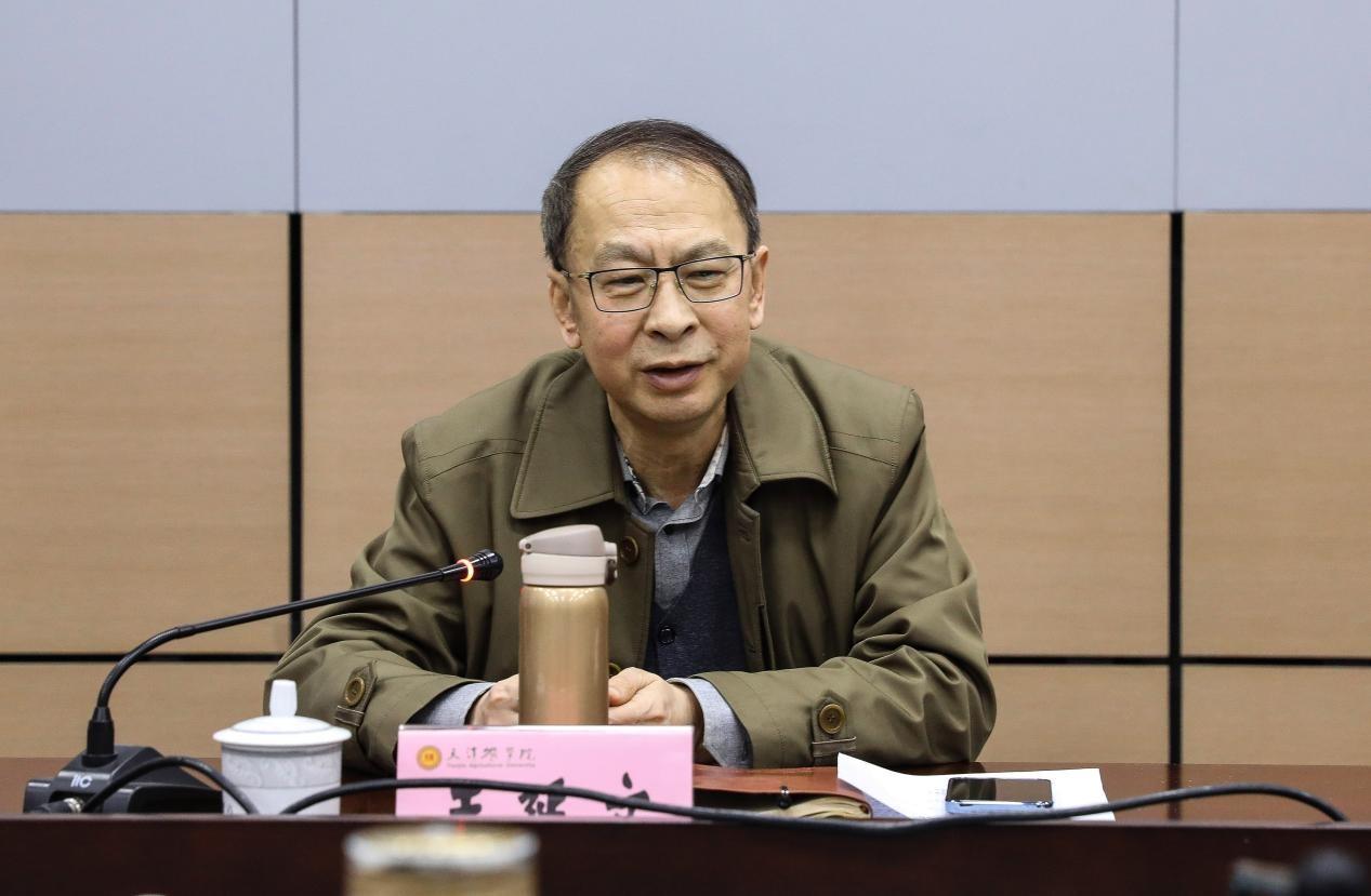 张民介绍了学校基本情况以及科技创新、人才队伍建设、科技帮扶等服务乡村振兴工作的开展情况。