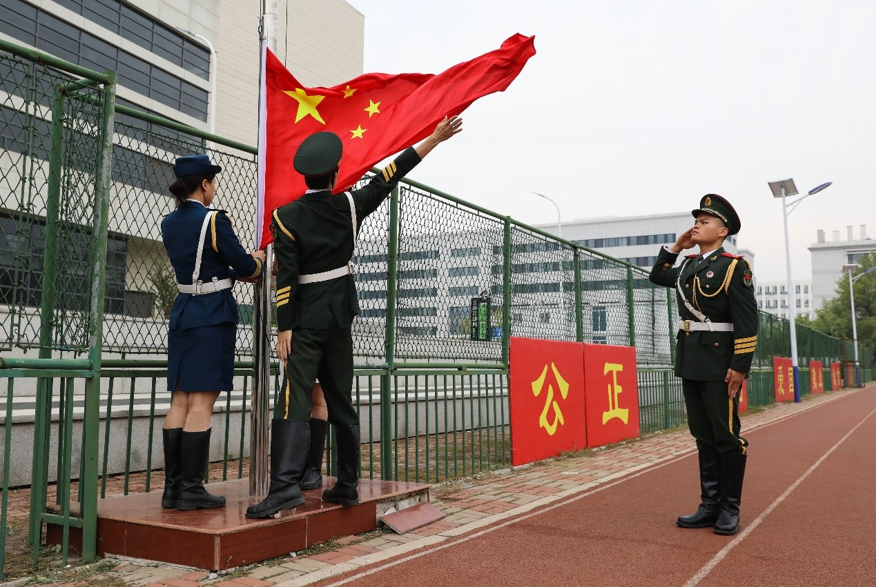 九时整,在雄壮的国歌声中,鲜艳的五星红旗冉冉升起,迎风飘扬。师生们庄严肃立、同唱国歌,向国旗行注目礼,共同祝愿伟大的祖国更加繁荣昌盛。随后,全体校领导来到食堂门前与师生共同切蛋糕庆祝祖国母亲生日,并向全校师生送上国庆祝福。