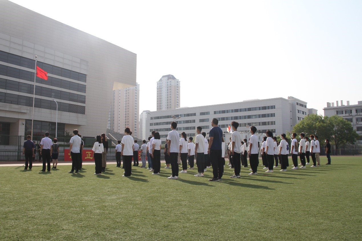 上午9点,升旗仪式正式开始,校国旗护卫队队员庄严列队,目光坚定。伴随着雄壮的国歌,五星红旗在晨光中冉冉升起。到场师生庄严肃立,面向国旗行注目礼,表达对革命先烈深深的缅怀与崇高的敬意。