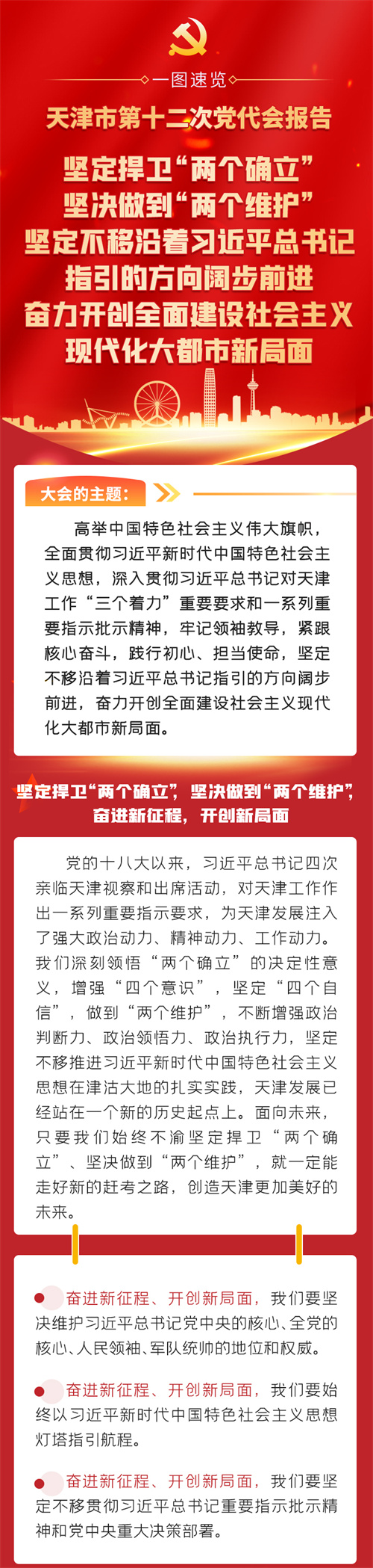 迎盛会 铸忠诚 强担当 创业绩 | 一图读懂天津市第十二次党代会报告